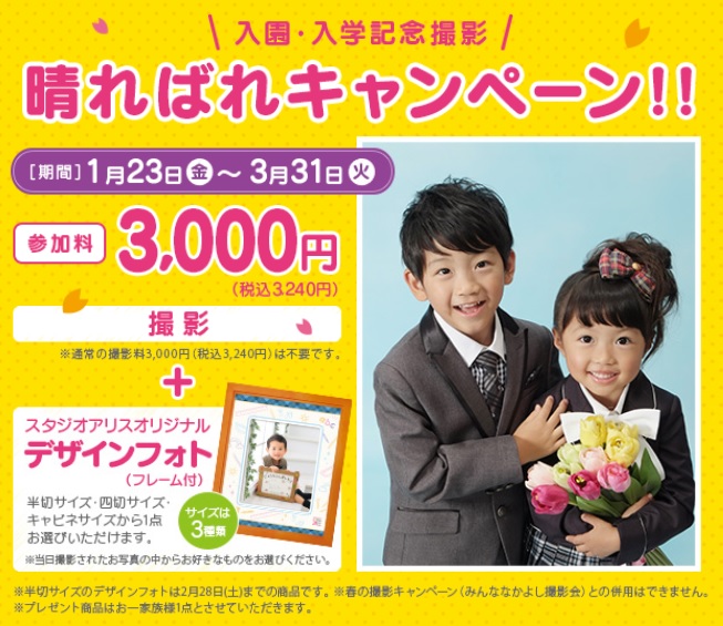 入園入学 卒園卒業キャンペーン キャンペーン情報 こども写真館スタジオアリス 写真スタジオ フォトスタジオ